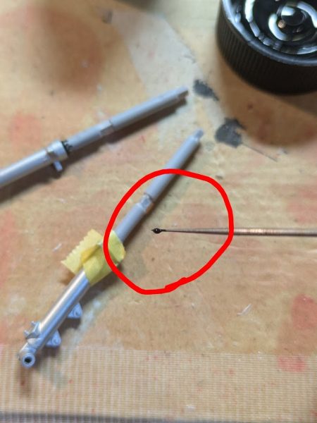 こんなとこの塗装なんて、針の先に塗料を載せて